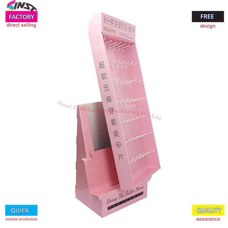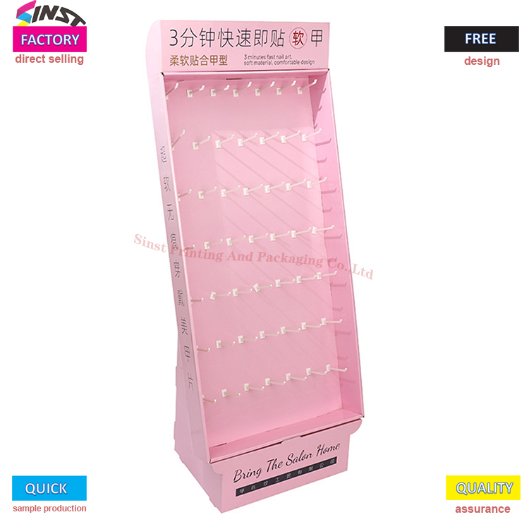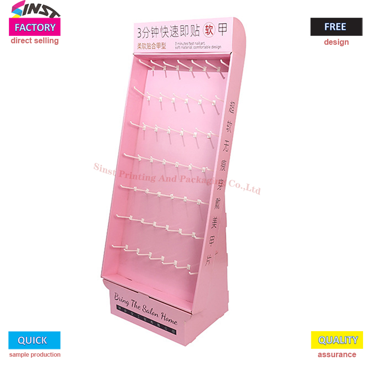 Cardboard Nail bemutató állvány A horgos bemutató állvány nagy szilárdságú hullámkartonból készült, és tartós használatban és kopásban. Nagy felbontású nyomtatási technológiát használ, nedvesség-, penész- és extrudálásálló.
