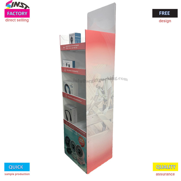 Az elektromos ventilátor kartonkijelző állvány egy kifejezetten elektromos ventilátor termékekhez, amelyek nagy szilárdságú és környezetbarát kartonból készülnek, különféle forgatókönyvekhez, például kiskereskedelmi üzletekhez, kiállítások, promóciós tevékenységek stb.