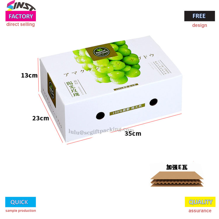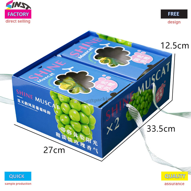A csomagolás forrásgyáraként a Sinst többféle méretben és színben elindította a szőlő-specifikus csomagolódobozokat, amely alkalmas e-kereskedelemre, ajándékra és friss élelmiszer-piacokra! A fő test megerősített E-csempe anyagból készül (a nyomás és a csepp ellenálló), klasszikus színsémákkal, például zöld, kék és fehér, párosítva a forgatókönyv alapú szlogenekkel, mint például a "Sunshine Rose" és a "Nyári szél a szőlő íze". Az átlátszó ablak/kézi heveder kialakítása intuitív módon megjeleníti a szőlő frissességét, így hordozható és szemet gyönyörködtető "sokoldalú választás" a szőlő ajándékdobozok csomagolásához!
