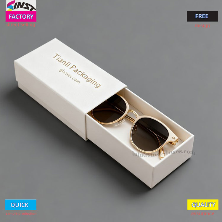 Márkás szemüvegtokként a tok fedelén és testén található forró nyomószöveg texturált, ami egy pillantással megkülönbözteti a többi hagyományos szemüvegtároló toktól. A Glasses díszdoboz sokoldalúsága még szembetűnőbb: ez egy szokásos szemüvegtároló doboz napi használatra, szépen elhelyezett fiókokkal; Ha ajándékot ad ügyfeleinek vagy barátainak, az arany-fehér üzleti stílusú csomagolás azonnal stílusos ajándékszemüvegtokká változik; Ha exkluzívabb szeretnél lenni, akkor találhatsz olyan gyárat is, ahol személyre szabhatod, és a doboz testére a márka logóját vagy áldásos üzenetét illesztheted, egyedi, személyre szabott szemüvegtokká frissítve - nem csak poharakat tartalmaz, hanem a címzettre is figyel.