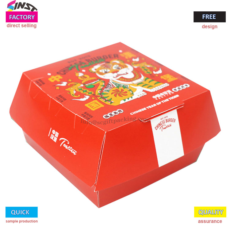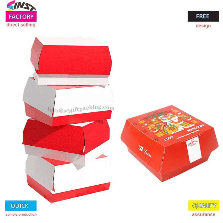 Hamburger elvihető ételcsomagoló papírdoboz (referenciaszám: CBW-476F)