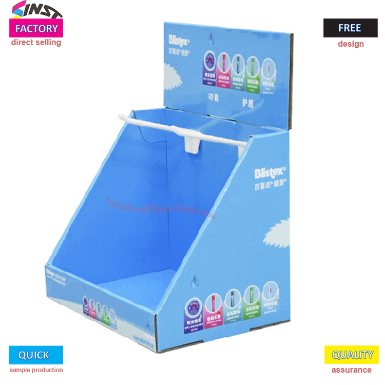 A Sinst a Körömlakk asztali kampós pult-megjelenítő dobozát, az asztali horogpapír-megjelenítő dobozt, a rúzspapír-megjelenítő dobozt szállítja. Az iparban különféle anyagok és eljárások testreszabhatók és gyárthatók; A PDQ sorozatú kijelzőállványokat főként szupermarketekben és nagy bevásárlóközpontokban használják a kis áruk jobb megjelenítésére. Tegye szépen elrendezve és széppé, hogy az ügyfelek vizuális hatást keltsenek;