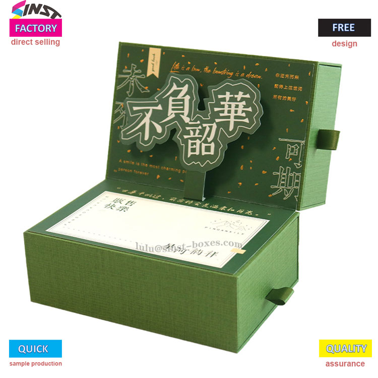 Ez a parfüm-ajándékdoboz, amelyet közvetlenül a SINST csomagolással és nyomtatással értékesít, a friss zöldet veszi fő tónusként. A fiókos doboztest háromdimenziós művészi karakterekkel és arany díszítéssel van felszerelve. A Parfüm díszdoboz oldalát "Shao" és "Qi" díszíti, a belső párnahorony pedig stabil és illatos, finomságot mutatva. A művészi érzék és a rituális érzék együttélése a minőségi választás az érzelmek közvetítésére.