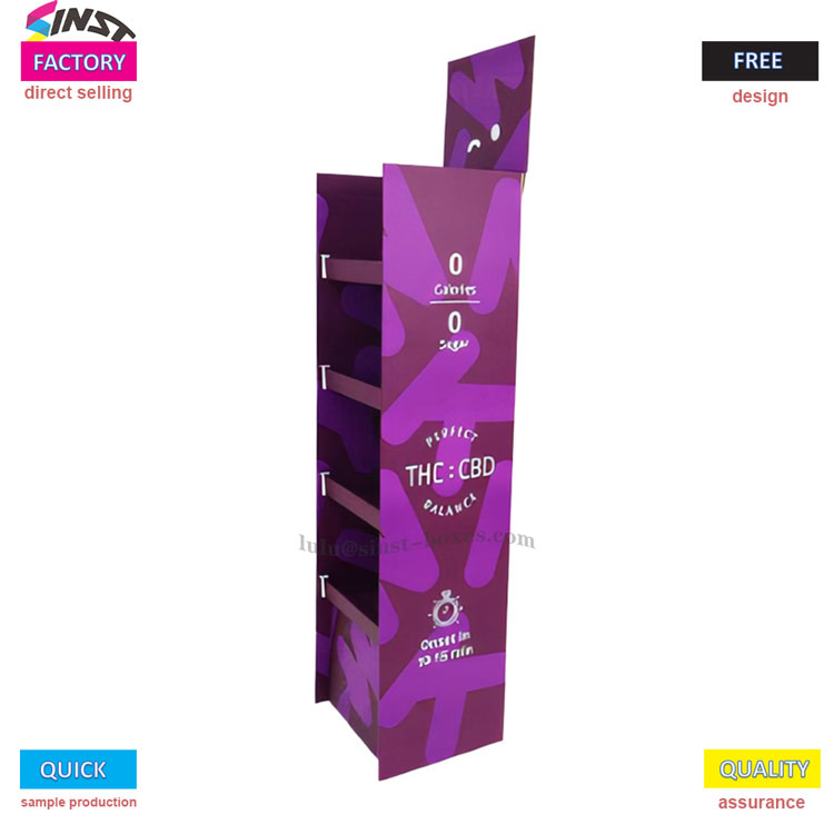 Mi a jó benne? Először is, a szín élénk lila, néhány játékos mintával, amely a pénztáros vagy a polc mellé helyezhető, és azonnal felkelti az emberek figyelmét; Ezenkívül több rétegre van osztva, amelyek sok kis elemet tud megjeleníteni, és nem foglalnak helyet, így többen láthatják ezeket az apró tárgyakat az üzletben; Sőt, ez a polc kartonból készült, ami költséget takarít meg, és lehetővé teszi a kis üzletek számára, hogy anélkül vásároljanak, hogy aggódnának a pénz miatt; Végül ezt egy régi gyár készíti, amely 15 éve gyárt kiállítási standokat. Bármilyen stílust testre szabhat, és gyorsan elkészítheti sürgős rendelésekre vagy mintagyártásra. Az összeszereléshez nincs szükség szerszámokra, ami különösen kényelmes.