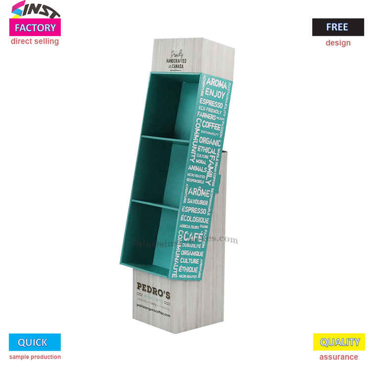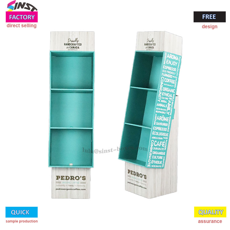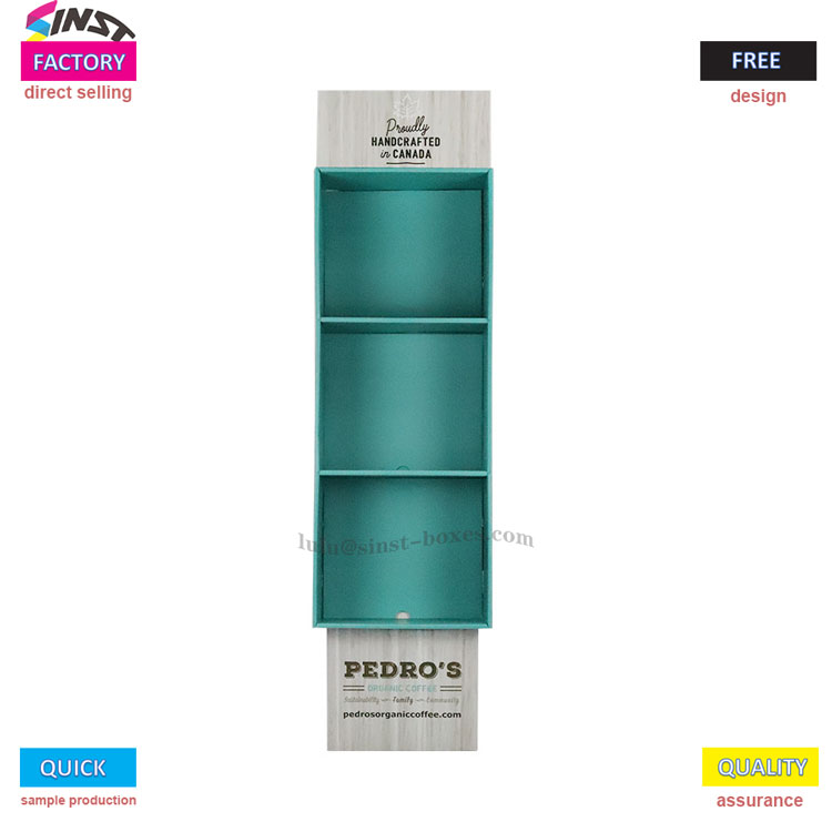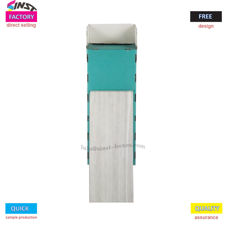 Ezt a hullámkarton írószer-kijelző állványt elsősorban különféle irodaszerek megjelenítésére használják. A teljes test téglalap alakú, világos fából vagy fehér faanyag-utánzatból készült, amely frissítően és texturáltan néz ki. Az előlapon három nyitott tárolórekesz került kialakításra, zöld vagy kék-zöld színben, amelyek tökéletesek az írószerek válogatására és tárolására. Legyen szó könyvekről, különféle jegyzetfüzetekről vagy különböző stílusú tollakról, mindegyik biztonságosan elhelyezhető. Sőt, ez a kijelző állvány enyhén előre dőlt trapéz alakú szerkezettel rendelkezik, így könnyebben elérheti és különösebb erőfeszítés nélkül elhelyezheti rajta a tárgyakat.